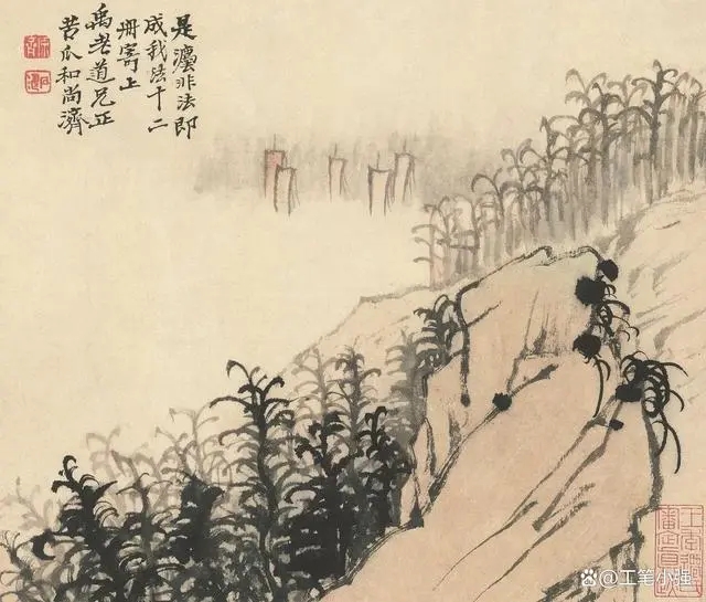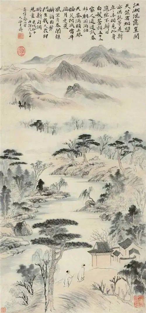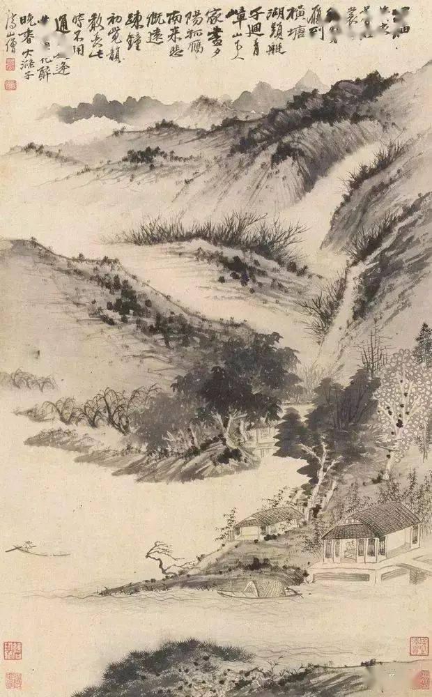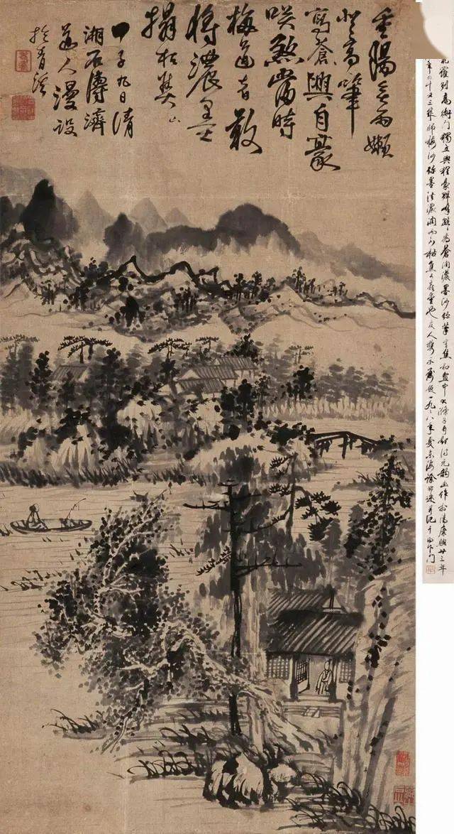石涛(1642年-1707年)明末清初画家,俗姓朱,名若极,小字阿长,僧名元济,一作原济,别号石涛,大涤子、钝根、石道人、苦瓜和尚、瞎尊者、清湘陈人、清湘老人、清湘遗人、零丁老人, [7]广西全州(今全县)人,明靖江王朱亨嘉之子。明亡之际出家为僧,与弘仁、髡残、朱耷合称“明末四僧”。 [1]石涛是中国绘画史上一位十分重要的人物,他既是绘画实践的探索者、革新者,又是艺术理论家。晚年定居扬州,并在此潜心创作直至逝世。
