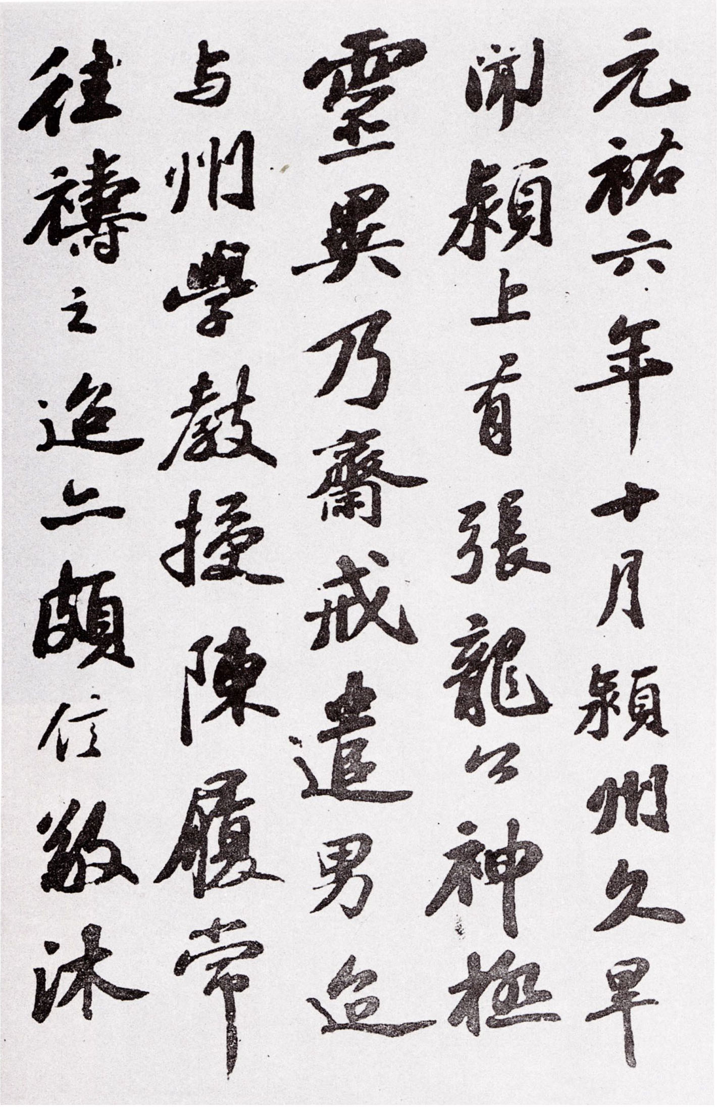 【释文】: 元祐六年十月,颍州久旱,闻颍上有张龙公神祠,极灵异,乃斋戒遣男迨与州学教授陈履常往祷之。迨亦颇信道教,沐浴斋居而往。明日,当以龙骨至,天色少变。二十六日,会景贶、履常、二欧阳,作诗云:“后夜龙作云,天明雪填渠。梦回闻剥啄,谁呼赵、陈、予?”景贶拊掌曰:“句法甚亲,前此未有此法。”季默曰:“有之。长官请客吏请客,目曰‘主簿、少府、我’。即此语也。”相与笑语。至三更归时,星斗灿然,就枕未几,而雨已鸣檐矣。至朔旦日,作五人者复会于郡斋。既感叹龙公之威德,复喜诗语之不谬。季默欲书之,以为异日一笑。是日,景贶出迨诗云:“吾侪归卧髀骨裂,会友携壶劳行役。”仆笑曰:“是男也,好勇过我。”