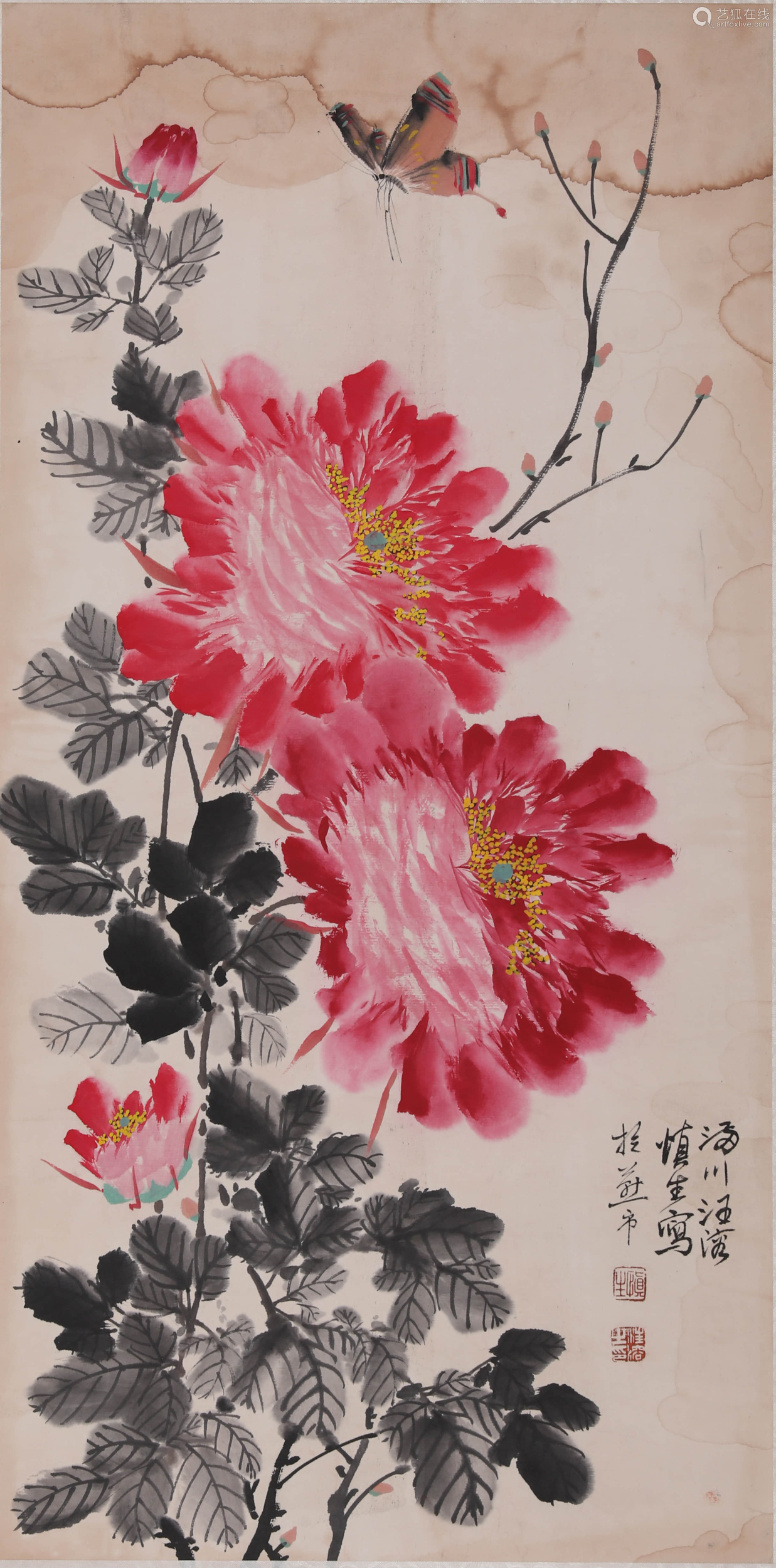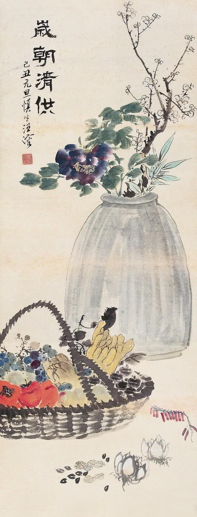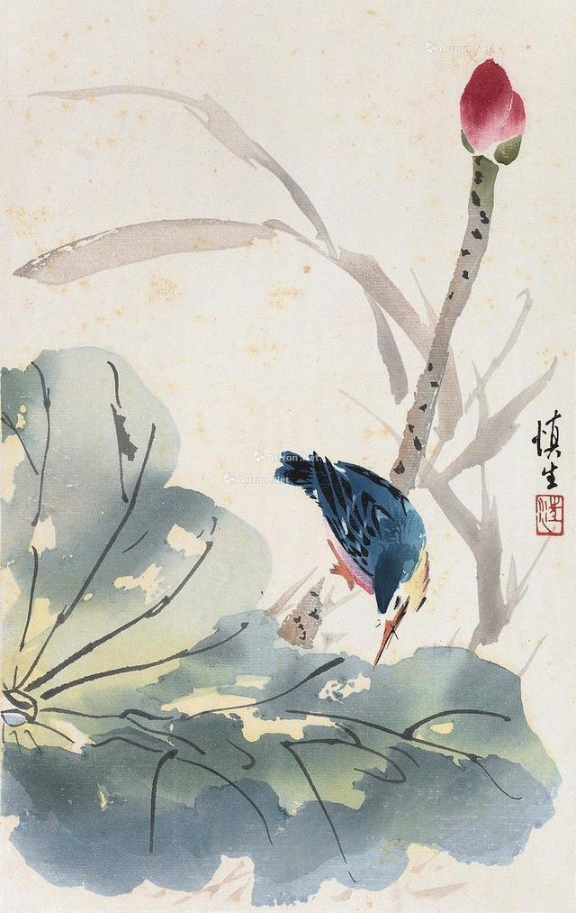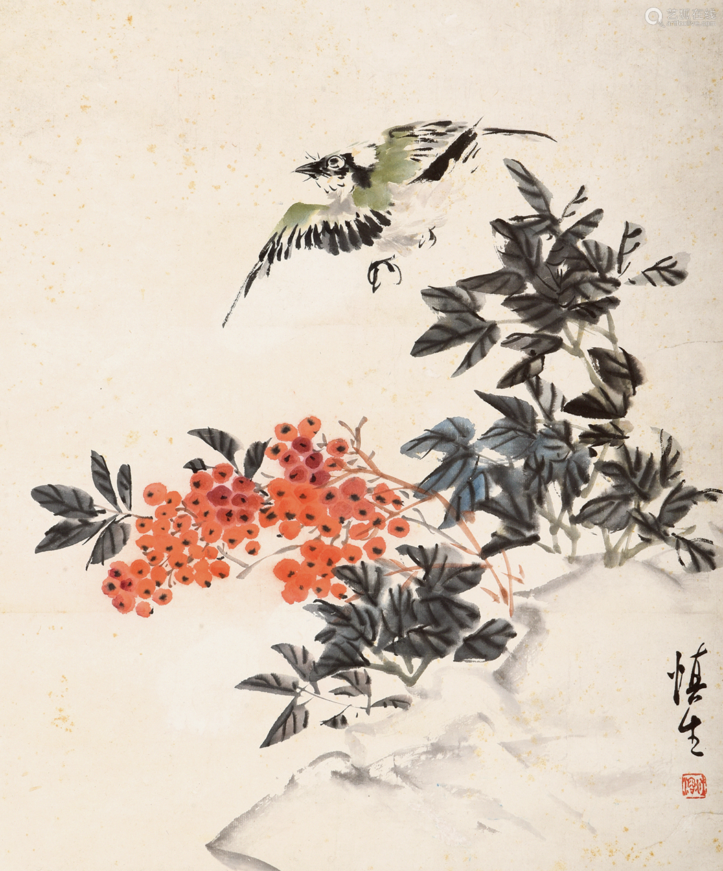 汪慎生 (1896-1972)名溶,字慎生。安徽歙县满川村(现汪满田)人。幼在浙江兰溪当学徒,后在上海画炭画谋生。约30年代初到京,先后任私立京华美术专科学校和辅仁大学美术系教授。解放后任民族美术研究所副研究员、北京画院画师、院务委员等职。汪慎生擅花鸟、山水,尤以花鸟著名,能工笔亦能写意,而以小写意花鸟画最富影响。民国时期与陈半丁、王雪涛等齐名。其画法,师陈白阳、华新罗、任伯年等,笔致生动,有平朴含蓄之致。汪氏在解放初所画《番茄丰收》表现出高超的写实能力,被认为是以传统画法表现新意新情的范例。入室弟子有张其翼、孙其峰、曹国鉴、潘素等均可传其笔墨画艺。