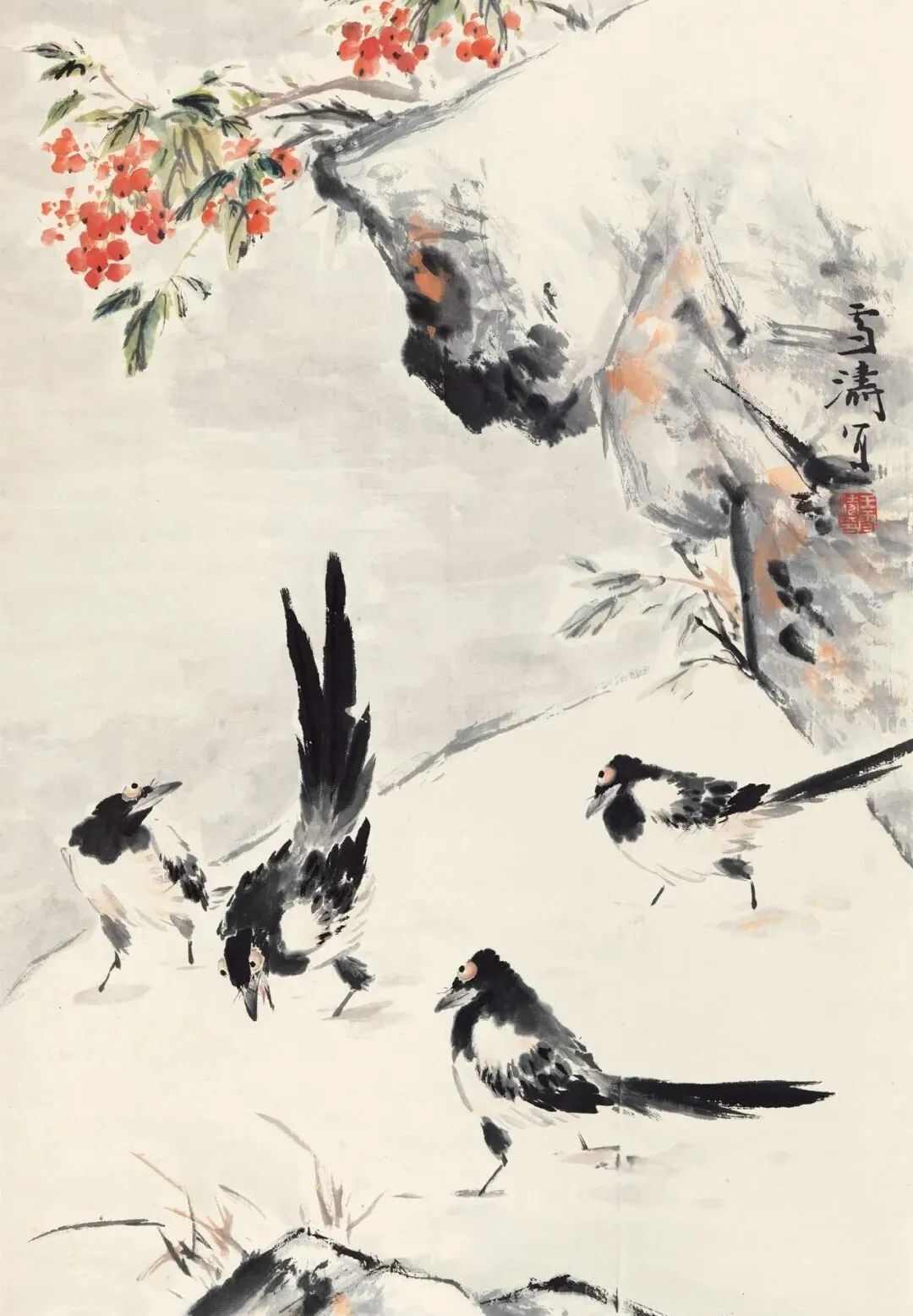 王雪涛(1903年12月31日—1982年11月24日),出生于河北成安,原名王庭钧,字晓封,号迟园,中国农工民主党党员,中国近现代花鸟画家,其主要绘画作品有《群鸡图》《万紫千红》《百花齐放》《四季花鸟》《报喜图》等,出版有《王雪涛画辑》《王雪涛画谱》《王雪涛的花鸟画》等。