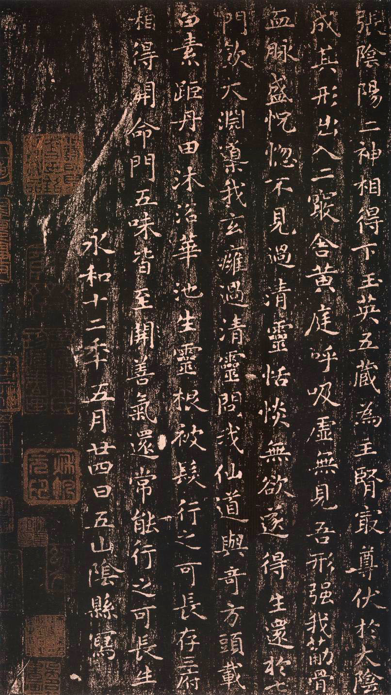 因此,《黄庭经》又俗称《换鹅帖》,无款,末署“永和十二年(356)五月”,现在留传的只是后世的摹刻本了。