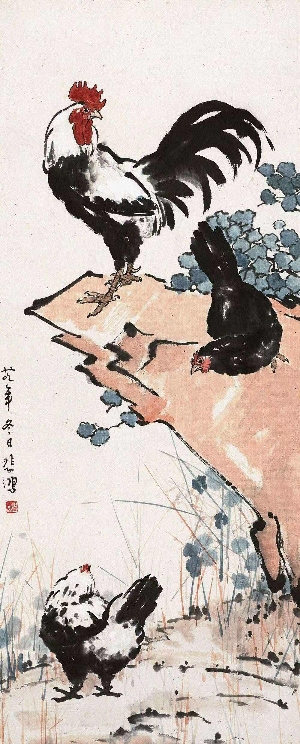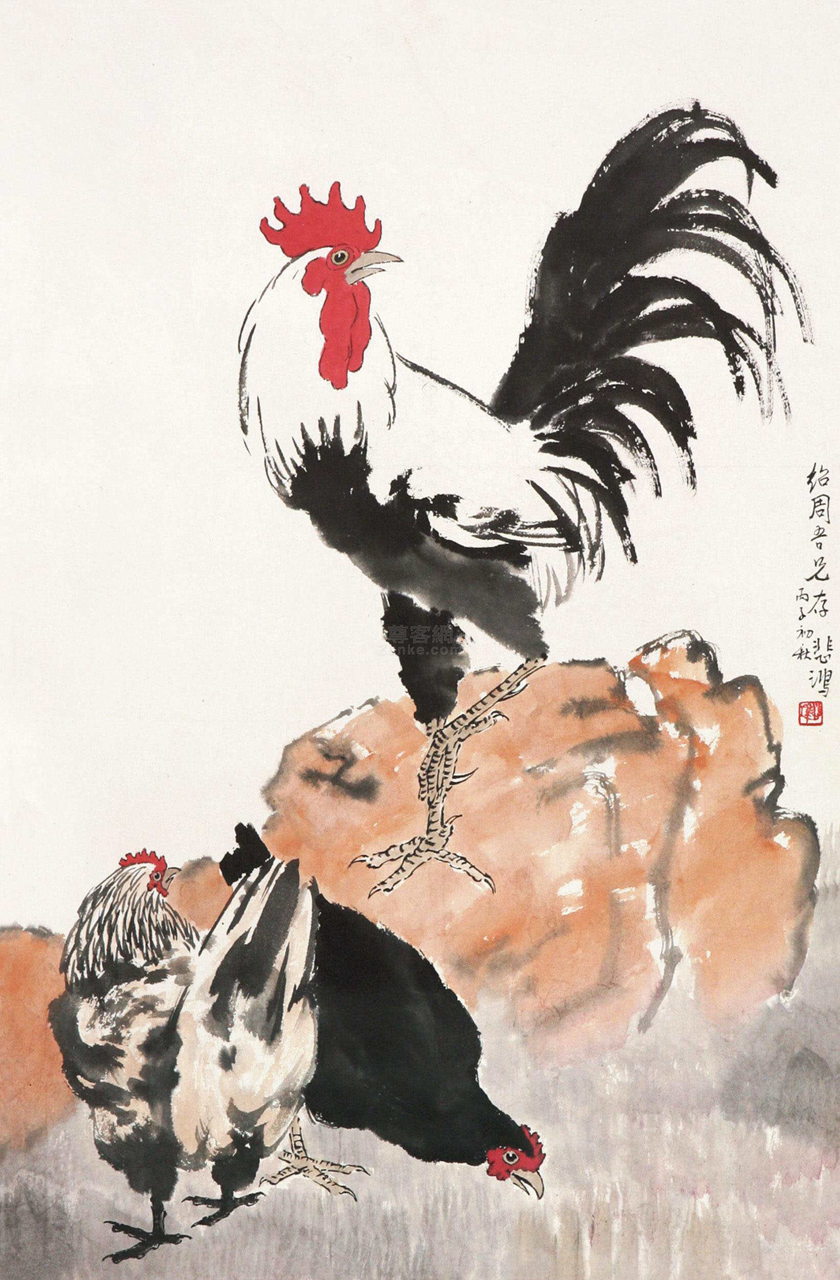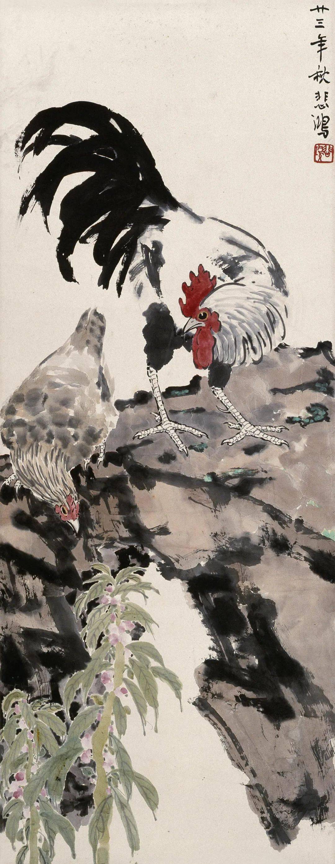 徐悲鸿花鸟画《公鸡》54幅