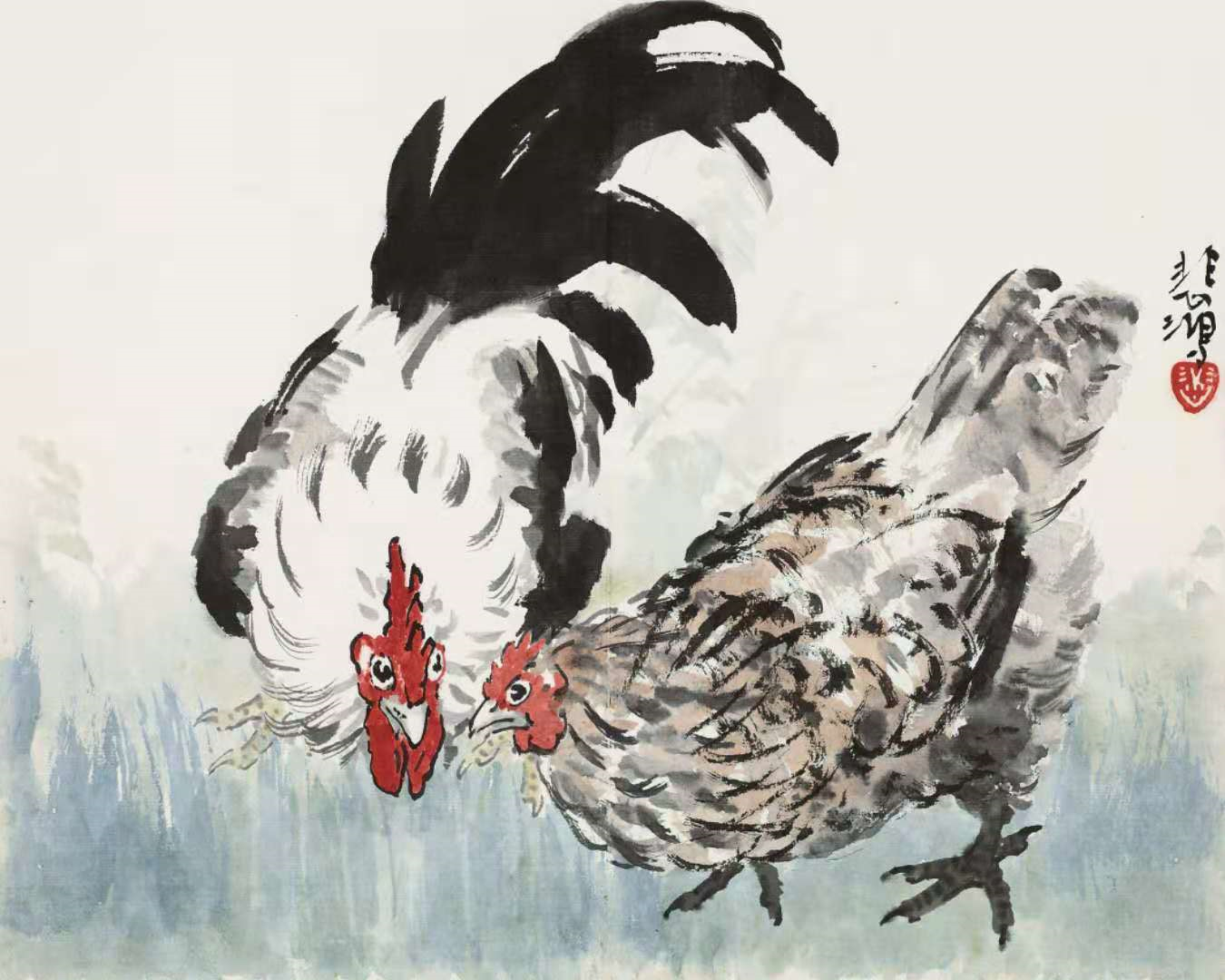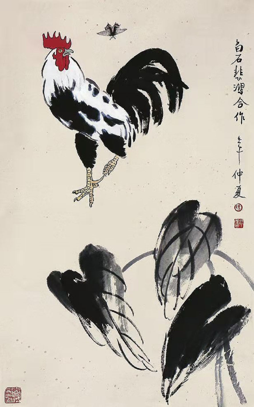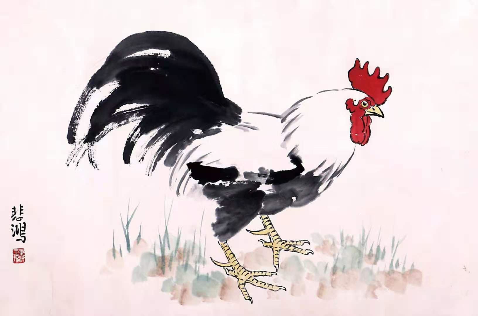 徐悲鸿花鸟画《公鸡》54幅
