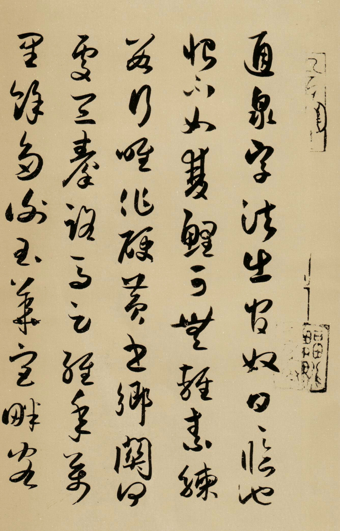 薛稷(649-713)书“慧普寺”三字,方径三尺,笔画雄劲,在通泉寿圣寺聚古堂。且薛稷曾画鹤於通泉县署的屋壁后,故「通泉」应该是指唐代书家薛稷。“官奴”為王羲之《官奴帖》,米芾以王羲之《十七帖》等与刘涇易得《官奴帖》。另有一本双钩麻纸本,在王仲修手上,事见米芾《宝章待访录》。
