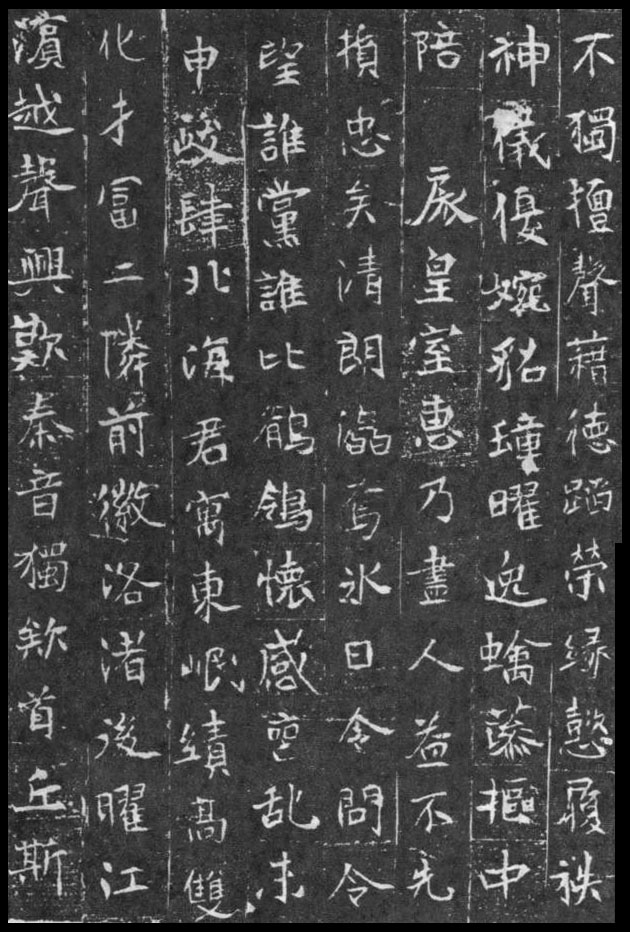 维天挺气,维岳降灵,猗欤显哲,资和诞形。学由心晓,智以性成,辟强幼达,令思早名。一彼一此,不独擅声。藉德蹈荣,缘懿履秩,神仪优婉,貂璋曜逸。螭藻枢中,陪扆皇室,惠乃尽人,益不先损。忠矣清朗,晶焉冰日,令问令望,谁党谁比。