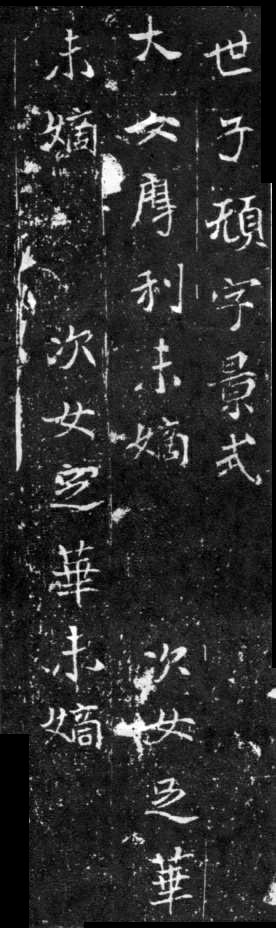 世子,颜字景式。大女摩利,未嫡。次女足华,未嫡。次女定华,未嫡。