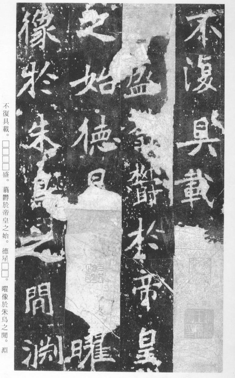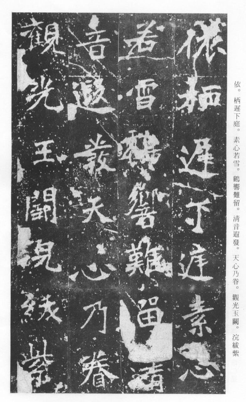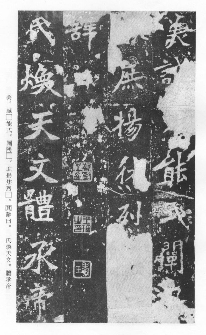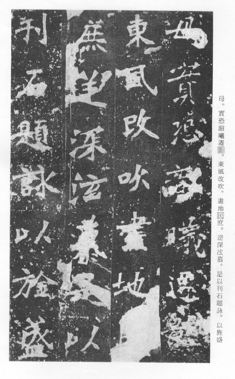《张猛龙清颂碑》立于北魏孝明帝正光三年(五二二),全称《魏鲁郡太守张府君清颂之碑》,现在山东曲阜孔庙中,有额有阴,碑文记颂魏鲁郡太守张猛龙兴办学校功绩,碑阴为题名,古人评价其书“正法虬已开欧虞之门户”,向被世人誉为“魏碑第一”。楷书二十六行,行四十六字,是魏碑后期佳作之一。碑文书法用笔方圆并用,结字长方,笔画虽属横平竖直,但不乏变化,自然合度,妍丽多姿。碑文中的“冬温夏清”四字被认为是鉴别有关张猛龙碑古拓、今拓、原拓、翻拓的重要依据。据说有些古人拓碑,每拓一次之后就要把原碑上的某字去掉一点或留下某种印记,使后人之拓永远不能与前人之拓相雷同相媲美,更不用说伪造作假了,可见古人用心之良苦。