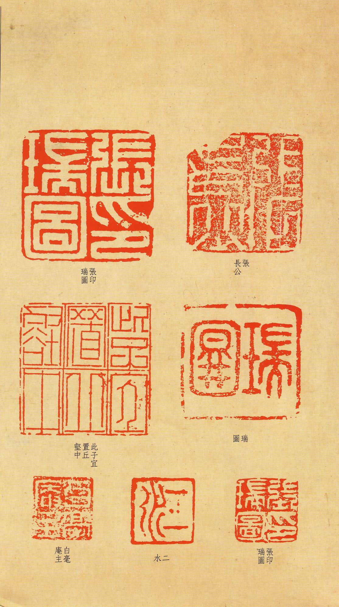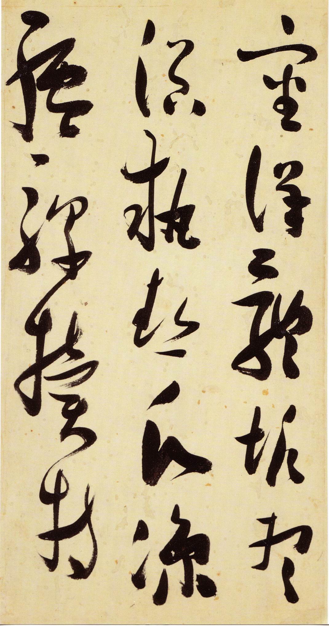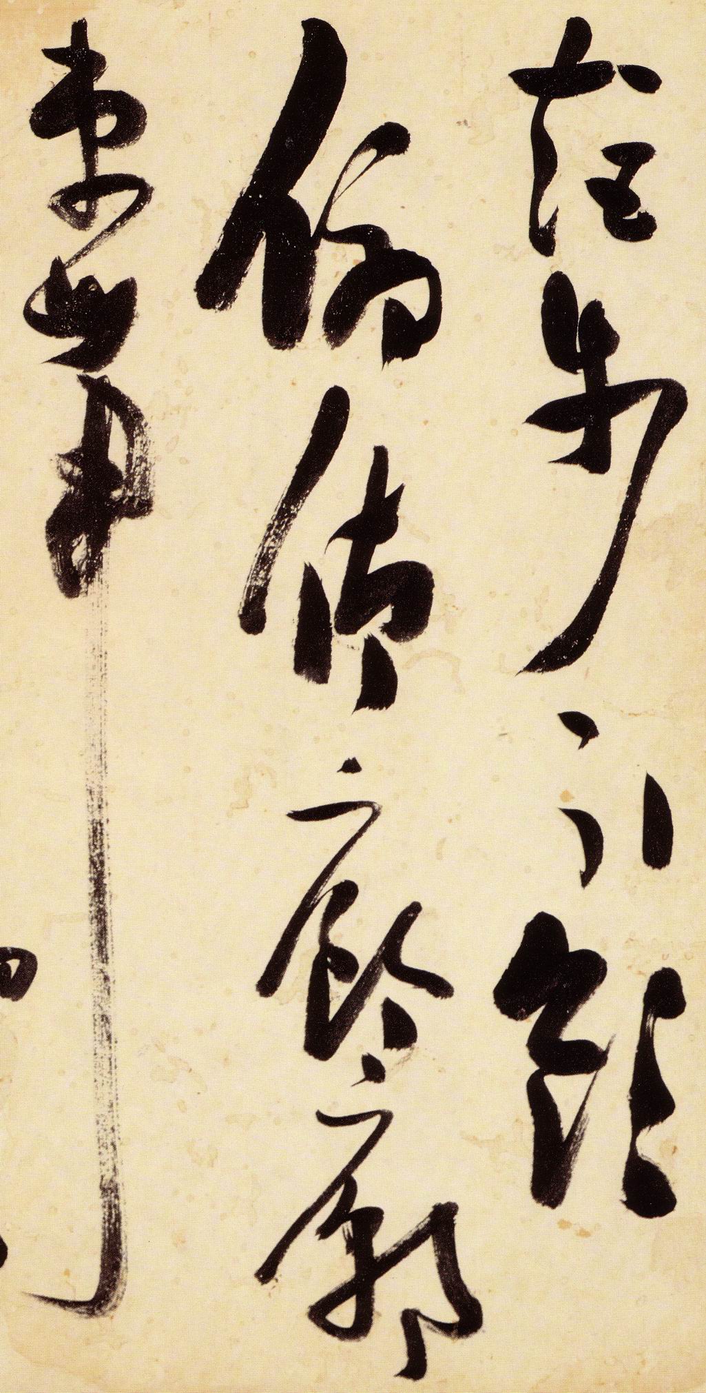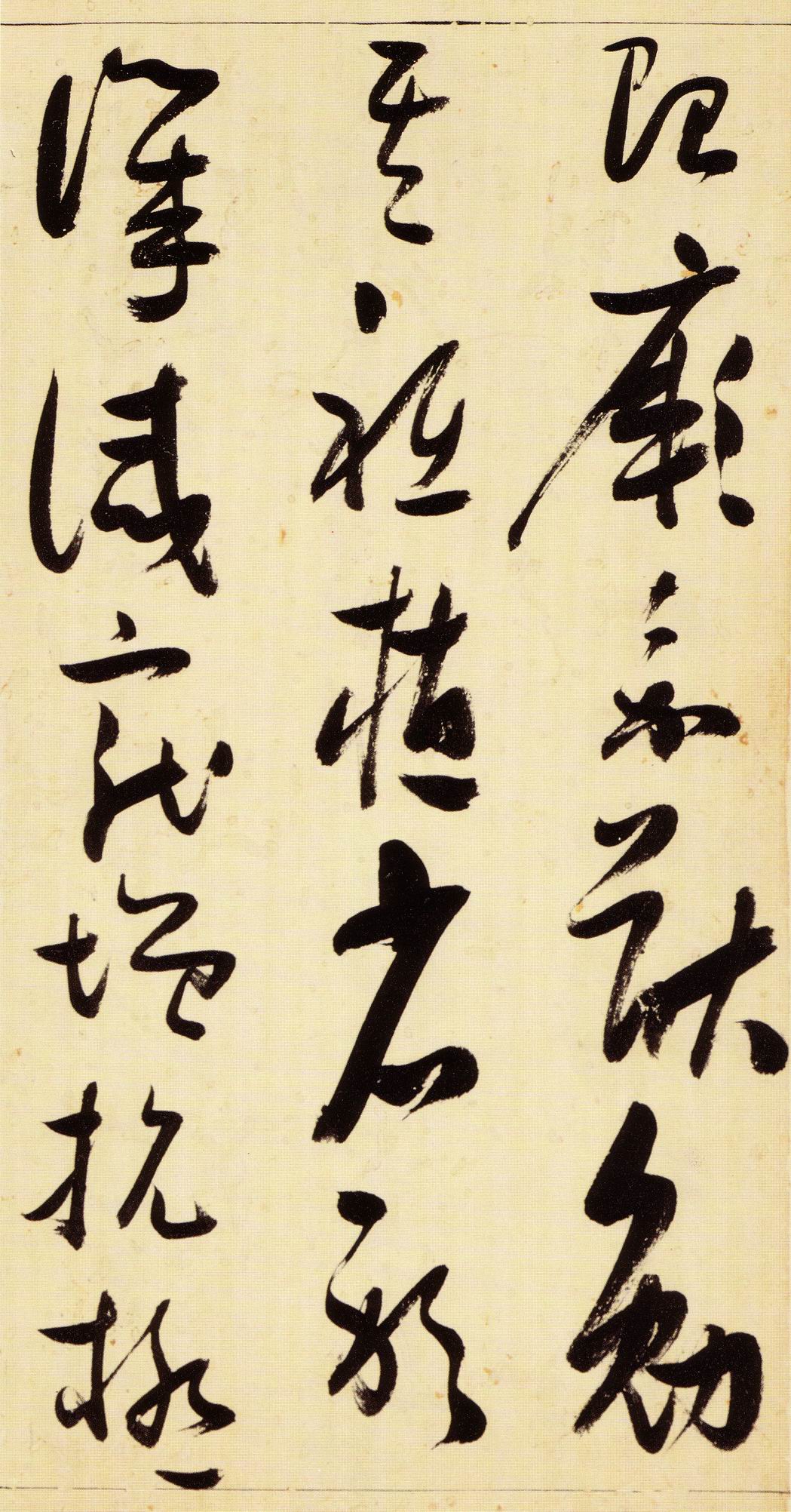张瑞图《草书千字文》卷 天启三年(1623) 此卷末署款“天啟癸亥书於都中,张长公瑞图。”天啟癸亥三年(1623年) 时,张在京任职,尚未入内阁,此卷為五十四岁所书,风格已趋成熟,然仍保留学孙 过庭和苏軾的某些笔法。全篇字与字之间连笔下多,而运笔之气贯通,以显示其放 逸之势:各字大小变化下大,主要靠结体的欹侧反正、紧密开张、左右轻重、上下 错落,来显现起伏跌宕:字姿呈方形的整体结构,又时出奇险之态,点画通过粗细、 乾溼、疏密、方圆的变化,表现出跳荡之势;全幅呈字距紧密、行距宽疏的布局,然 紧密字距中,时用舒缓的笔法和揖让的结体来调节,宽疏行距中,又时以出格之字 和破直之势来调节,从而达到了密而不窒、疏而不空的效果。这些都体现了张瑞图 典型书风的主要特色。然此卷笔法多用圆润中锋和厚重笔道,少劲利峻峭之势;转 折处多婉转,并非每转必折,每折必劲,也少侧锋偃笔;在奇异结体中仍时见瀟洒 秀丽之字,狂放而未失於怪诞。这些特点表明孙过庭车书所具的流润和法度之影响 尚未完全消褪,苏軾浑厚凝重的笔法仍在起作用,北朝碑学之痕跡尚下显著。因此, 这卷《草书千字文》反映的是张瑞图转变时期书风,对了解他的书法发展演变轨 跡具有重要参证价值。