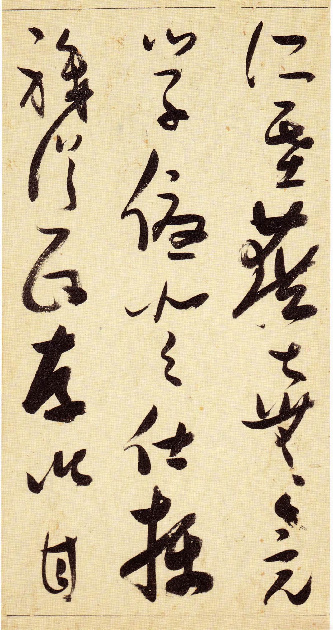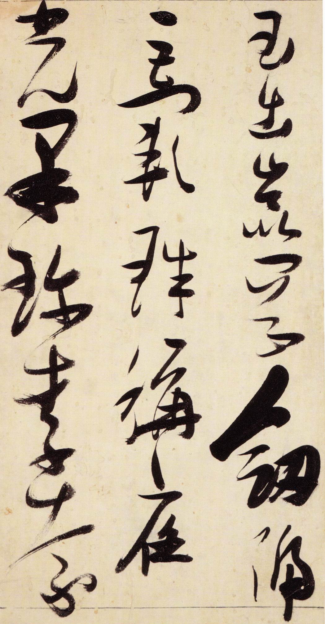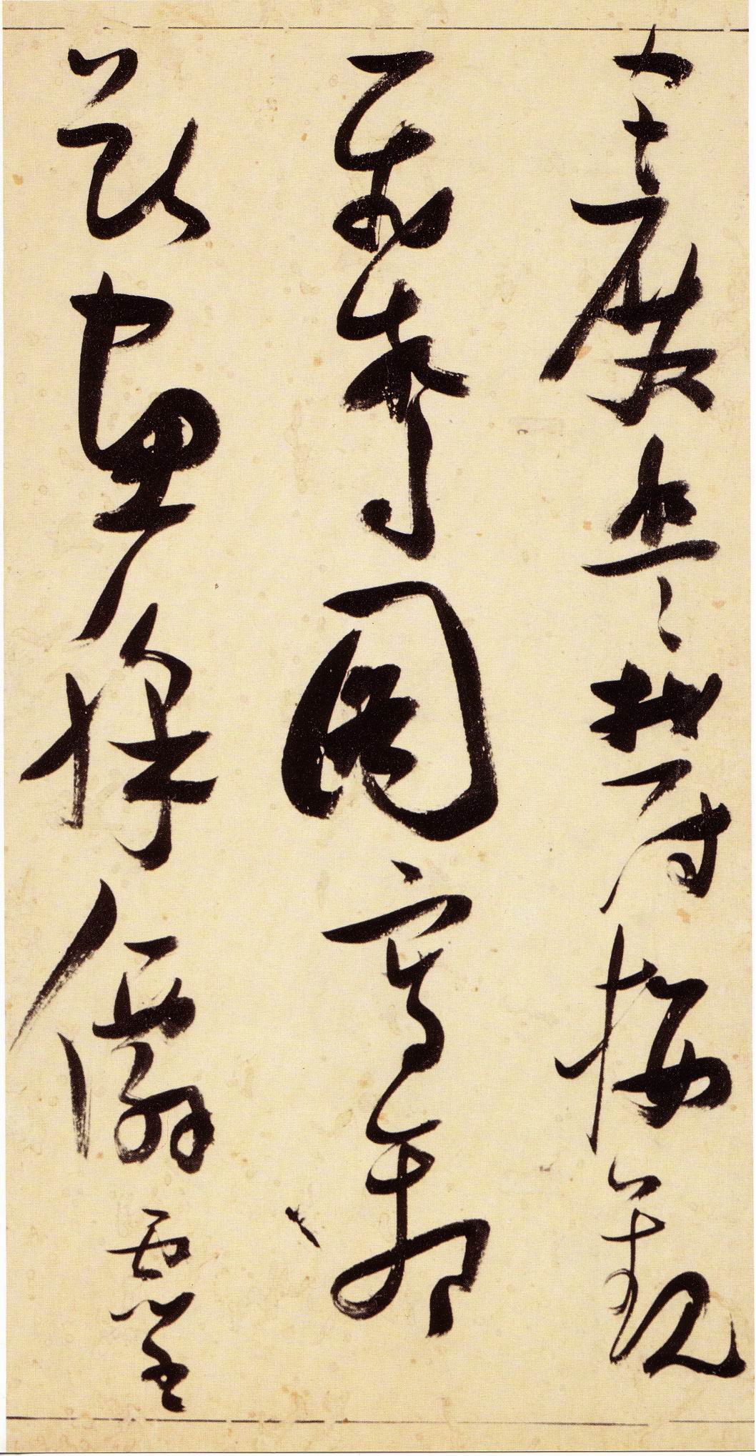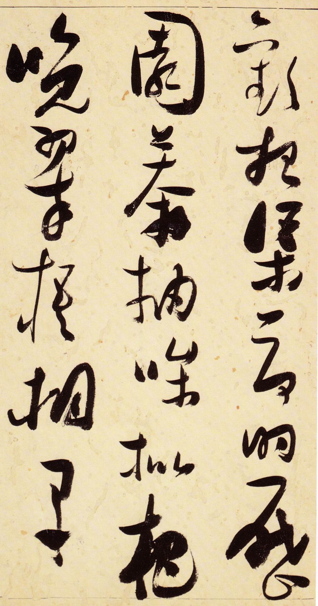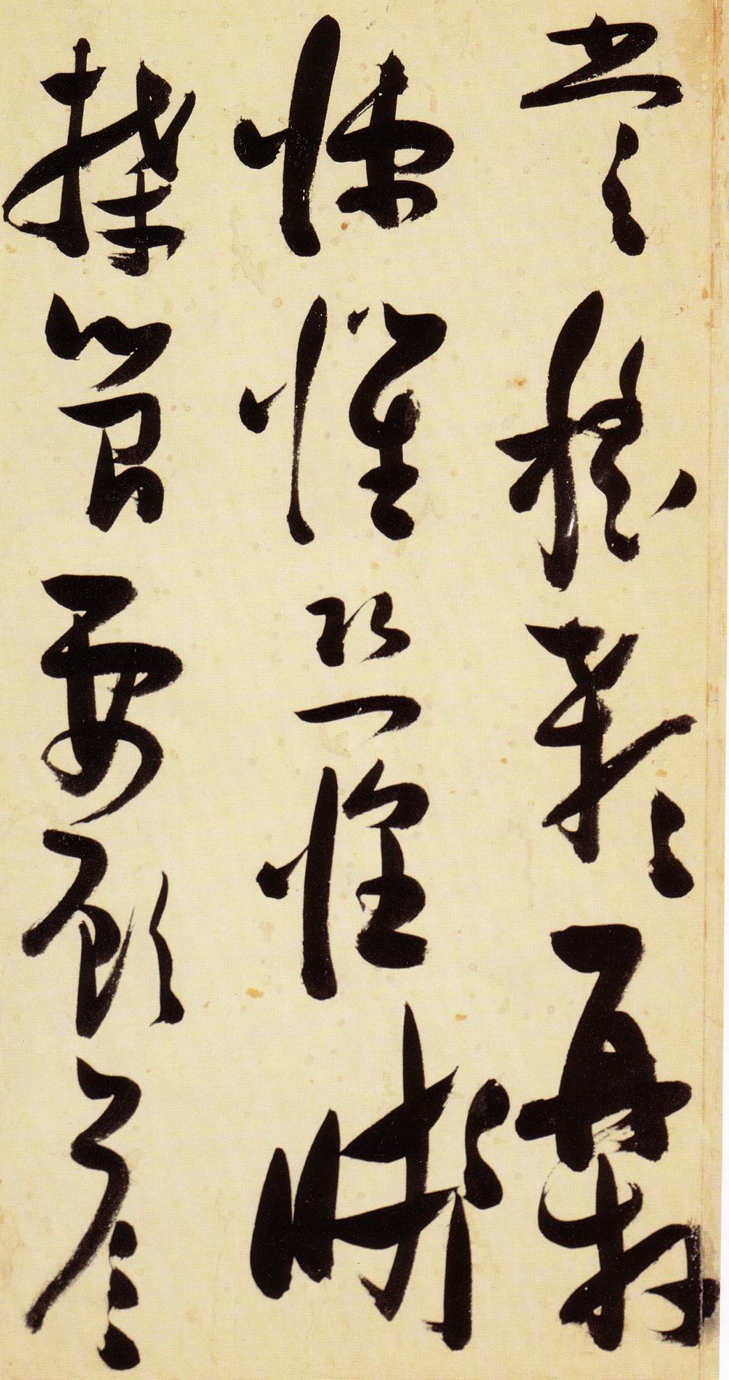 张瑞图《草书千字文》卷 天启三年(1623) 此卷末署款“天啟癸亥书於都中,张长公瑞图。”天啟癸亥三年(1623年) 时,张在京任职,尚未入内阁,此卷為五十四岁所书,风格已趋成熟,然仍保留学孙 过庭和苏軾的某些笔法。全篇字与字之间连笔下多,而运笔之气贯通,以显示其放 逸之势:各字大小变化下大,主要靠结体的欹侧反正、紧密开张、左右轻重、上下 错落,来显现起伏跌宕:字姿呈方形的整体结构,又时出奇险之态,点画通过粗细、 乾溼、疏密、方圆的变化,表现出跳荡之势;全幅呈字距紧密、行距宽疏的布局,然 紧密字距中,时用舒缓的笔法和揖让的结体来调节,宽疏行距中,又时以出格之字 和破直之势来调节,从而达到了密而不窒、疏而不空的效果。这些都体现了张瑞图 典型书风的主要特色。然此卷笔法多用圆润中锋和厚重笔道,少劲利峻峭之势;转 折处多婉转,并非每转必折,每折必劲,也少侧锋偃笔;在奇异结体中仍时见瀟洒 秀丽之字,狂放而未失於怪诞。这些特点表明孙过庭车书所具的流润和法度之影响 尚未完全消褪,苏軾浑厚凝重的笔法仍在起作用,北朝碑学之痕跡尚下显著。因此, 这卷《草书千字文》反映的是张瑞图转变时期书风,对了解他的书法发展演变轨 跡具有重要参证价值。
