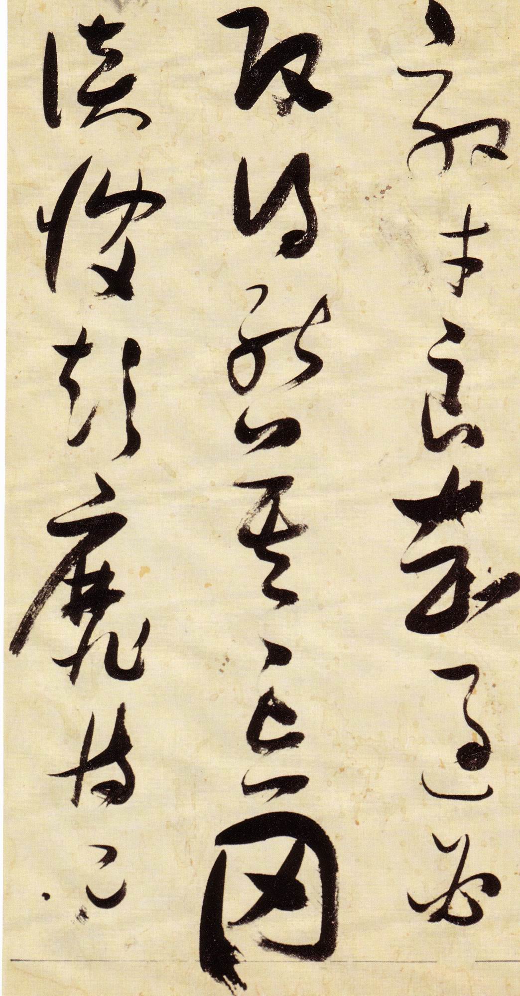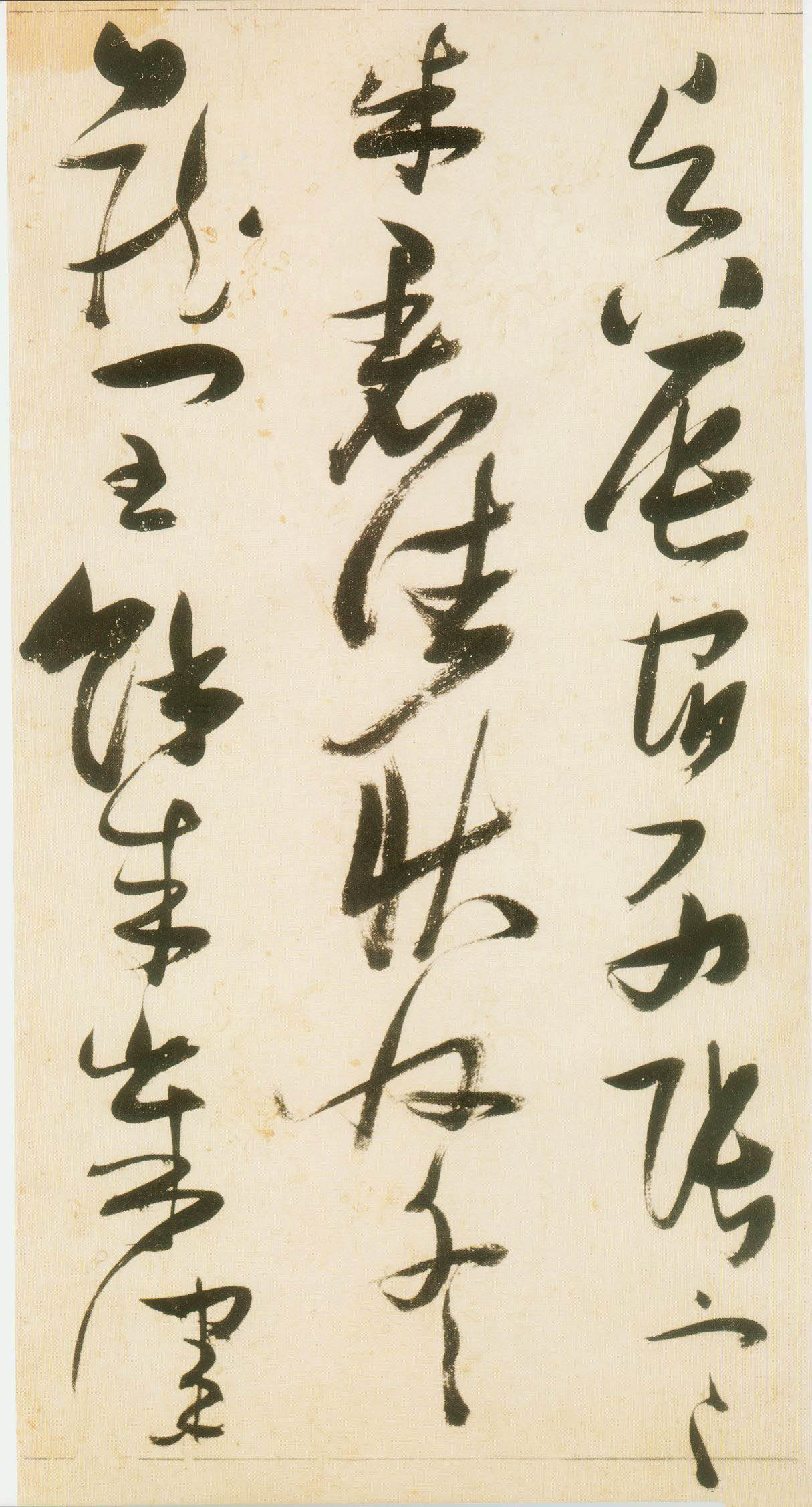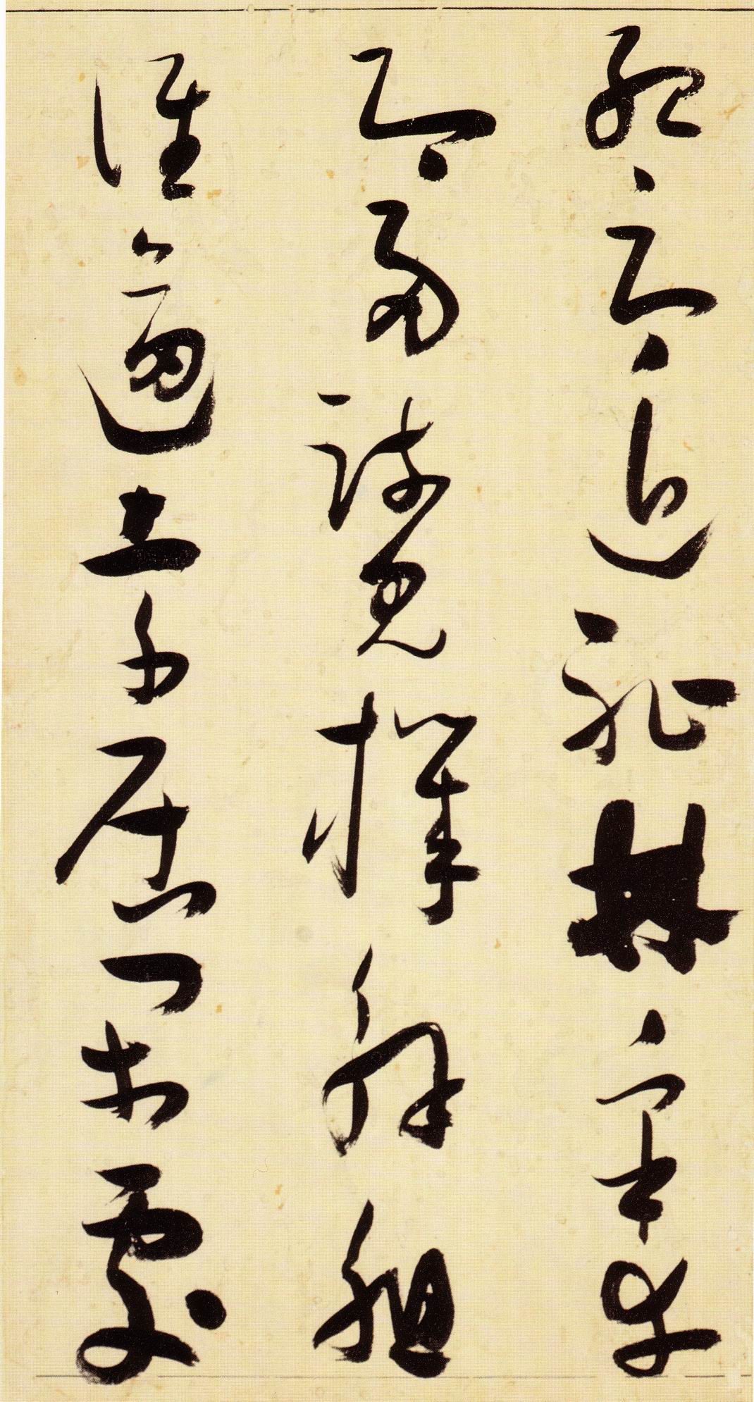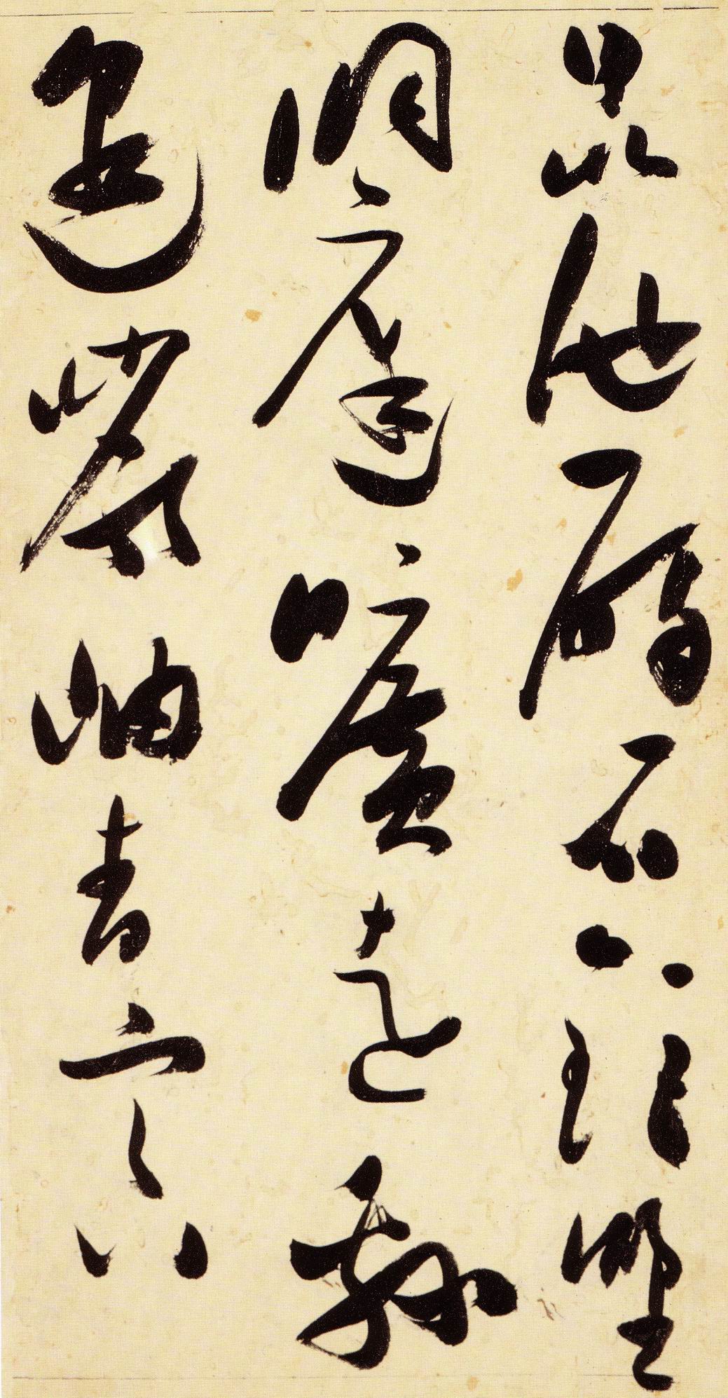 张瑞图《草书千字文》卷 天启三年(1623) 此卷末署款“天啟癸亥书於都中,张长公瑞图。”天啟癸亥三年(1623年) 时,张在京任职,尚未入内阁,此卷為五十四岁所书,风格已趋成熟,然仍保留学孙 过庭和苏軾的某些笔法。全篇字与字之间连笔下多,而运笔之气贯通,以显示其放 逸之势:各字大小变化下大,主要靠结体的欹侧反正、紧密开张、左右轻重、上下 错落,来显现起伏跌宕:字姿呈方形的整体结构,又时出奇险之态,点画通过粗细、 乾溼、疏密、方圆的变化,表现出跳荡之势;全幅呈字距紧密、行距宽疏的布局,然 紧密字距中,时用舒缓的笔法和揖让的结体来调节,宽疏行距中,又时以出格之字 和破直之势来调节,从而达到了密而不窒、疏而不空的效果。这些都体现了张瑞图 典型书风的主要特色。然此卷笔法多用圆润中锋和厚重笔道,少劲利峻峭之势;转 折处多婉转,并非每转必折,每折必劲,也少侧锋偃笔;在奇异结体中仍时见瀟洒 秀丽之字,狂放而未失於怪诞。这些特点表明孙过庭车书所具的流润和法度之影响 尚未完全消褪,苏軾浑厚凝重的笔法仍在起作用,北朝碑学之痕跡尚下显著。因此, 这卷《草书千字文》反映的是张瑞图转变时期书风,对了解他的书法发展演变轨 跡具有重要参证价值。