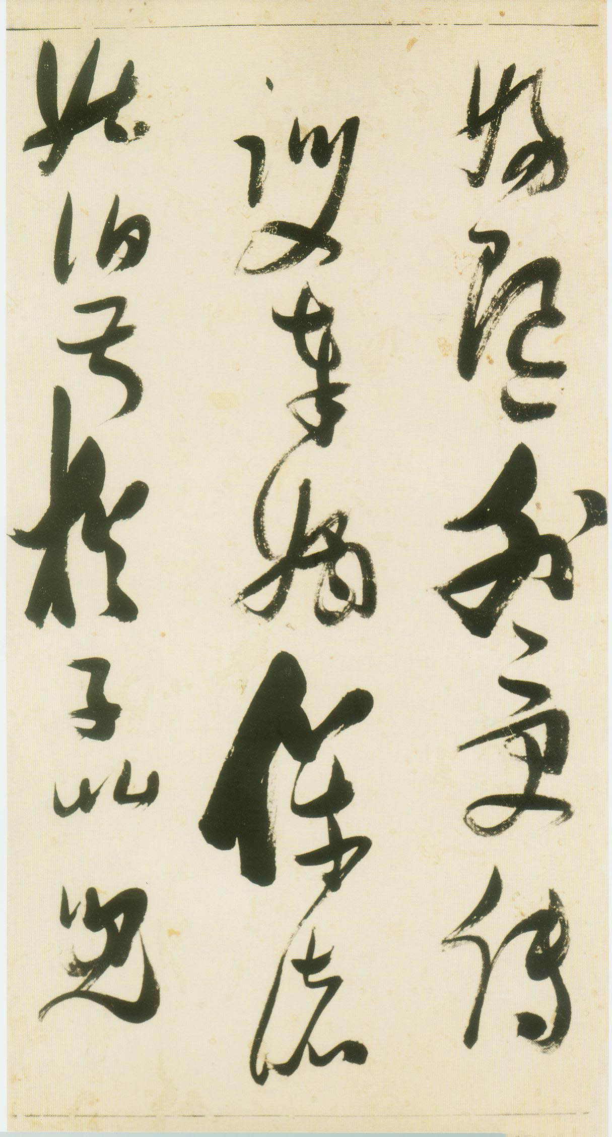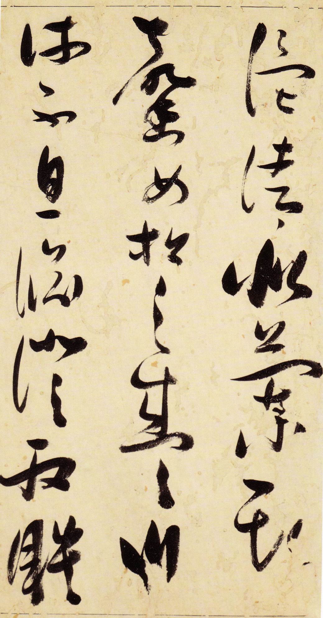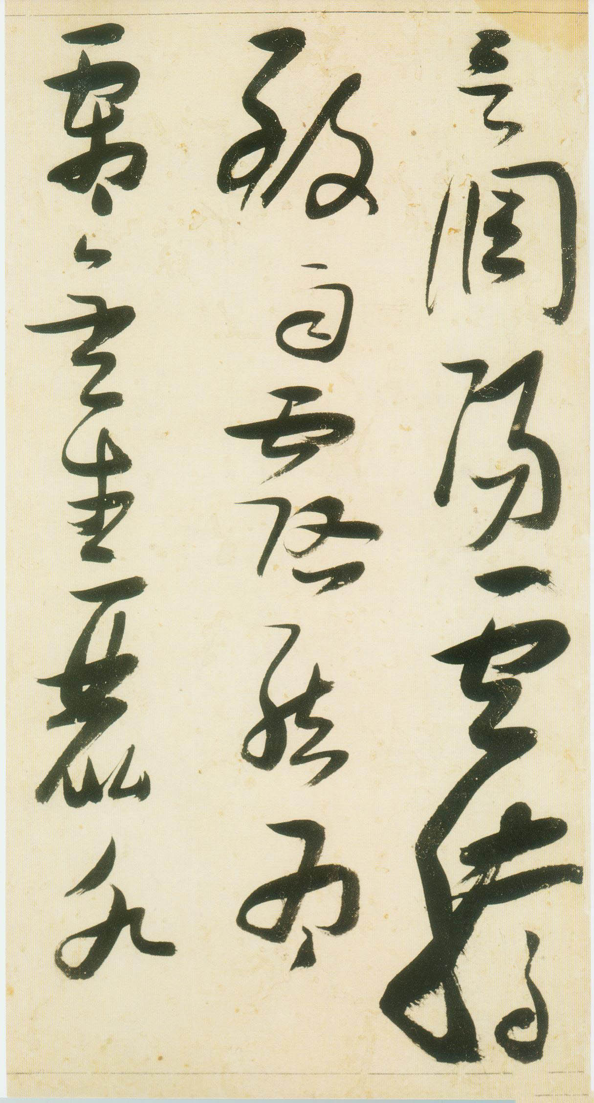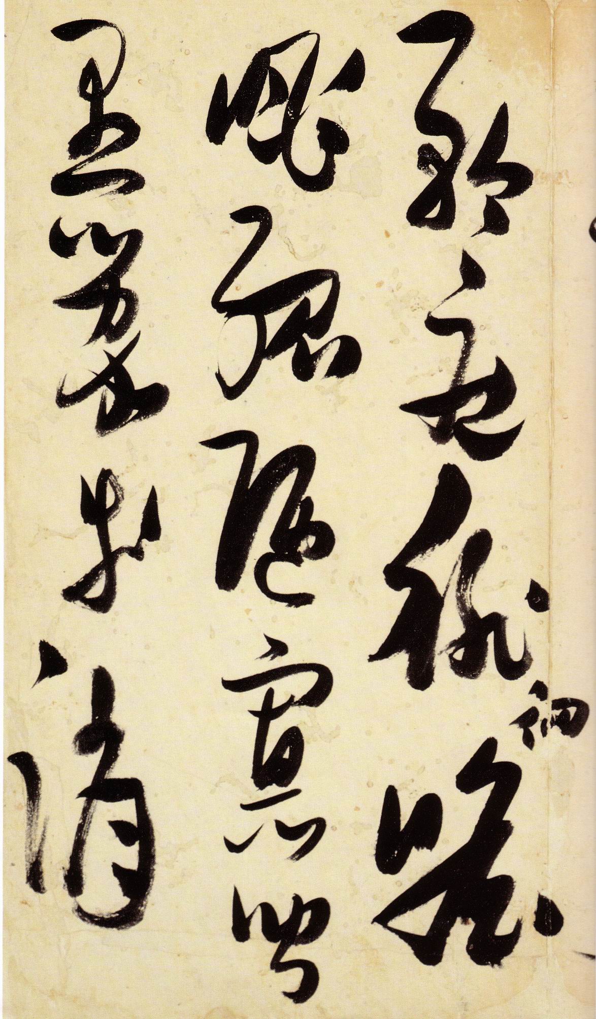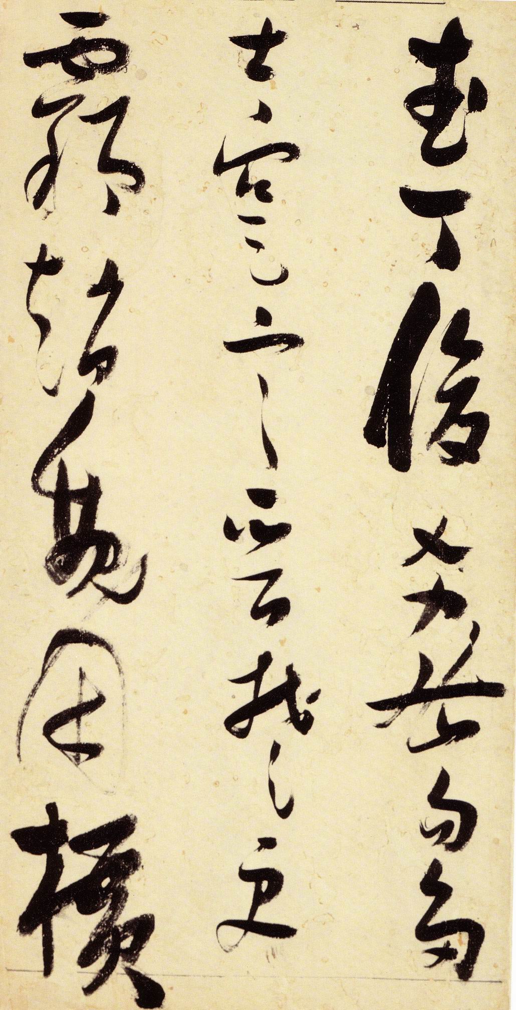 张瑞图《草书千字文》卷 天启三年(1623) 此卷末署款“天啟癸亥书於都中,张长公瑞图。”天啟癸亥三年(1623年) 时,张在京任职,尚未入内阁,此卷為五十四岁所书,风格已趋成熟,然仍保留学孙 过庭和苏軾的某些笔法。全篇字与字之间连笔下多,而运笔之气贯通,以显示其放 逸之势:各字大小变化下大,主要靠结体的欹侧反正、紧密开张、左右轻重、上下 错落,来显现起伏跌宕:字姿呈方形的整体结构,又时出奇险之态,点画通过粗细、 乾溼、疏密、方圆的变化,表现出跳荡之势;全幅呈字距紧密、行距宽疏的布局,然 紧密字距中,时用舒缓的笔法和揖让的结体来调节,宽疏行距中,又时以出格之字 和破直之势来调节,从而达到了密而不窒、疏而不空的效果。这些都体现了张瑞图 典型书风的主要特色。然此卷笔法多用圆润中锋和厚重笔道,少劲利峻峭之势;转 折处多婉转,并非每转必折,每折必劲,也少侧锋偃笔;在奇异结体中仍时见瀟洒 秀丽之字,狂放而未失於怪诞。这些特点表明孙过庭车书所具的流润和法度之影响 尚未完全消褪,苏軾浑厚凝重的笔法仍在起作用,北朝碑学之痕跡尚下显著。因此, 这卷《草书千字文》反映的是张瑞图转变时期书风,对了解他的书法发展演变轨 跡具有重要参证价值。